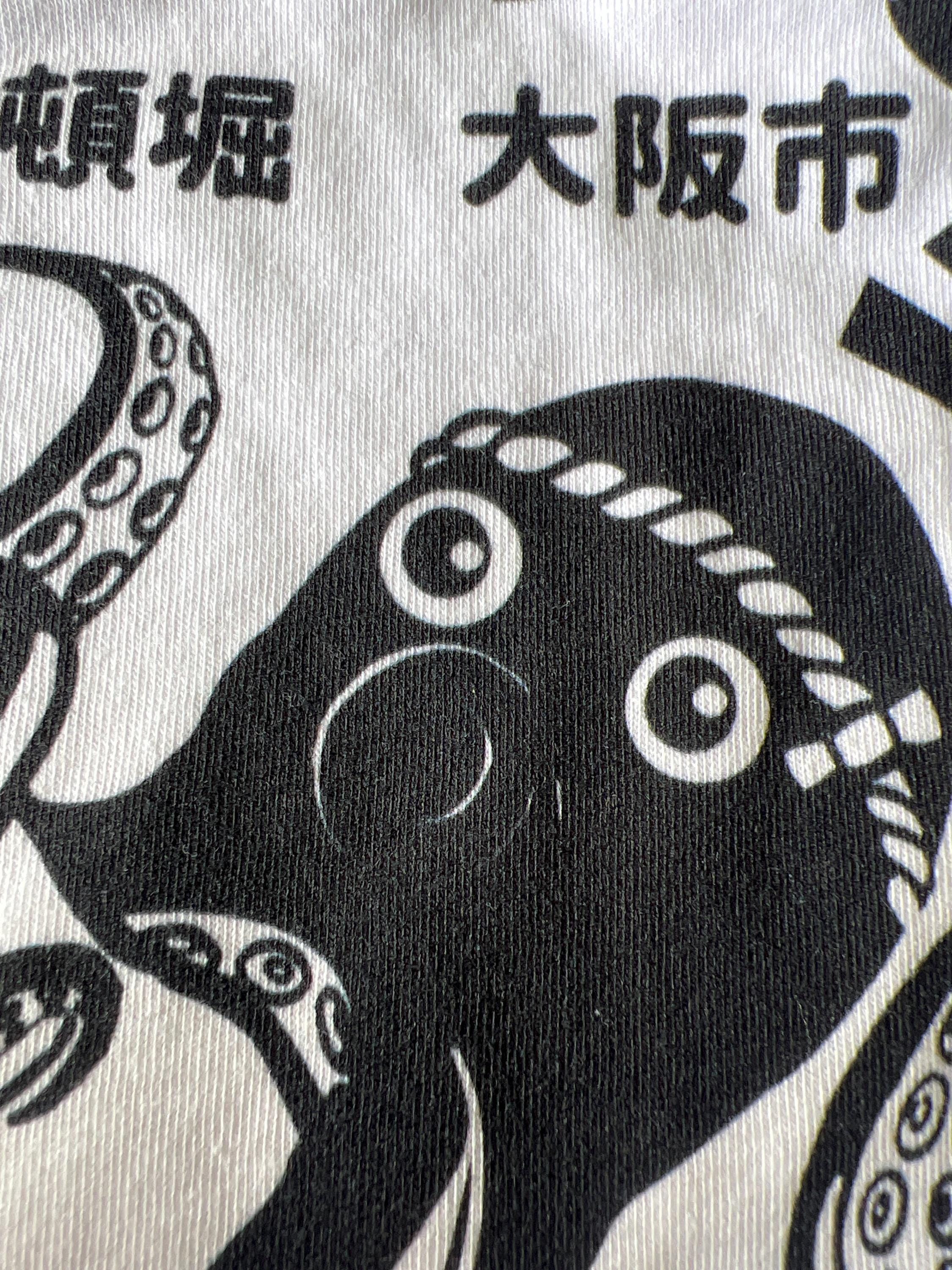 Takoyaki (たこ焼き or 蛸焼) or "octopus balls" is a ball-shaped Japanese snack made of a wheat flour-based batter and cooked in a special molded pan. It is typically filled with minced or diced octopus, tempura scraps, pickled ginger, and green onion. Dotonburi is an area in the city of Osaka that is filled with food vendors and places. The shirt is crowded to illustrate the overwhelming sensation that tourists sometimes describe the busy area.This unisex Tee has multiple colors and sizes. Printed on the high quality Bella Canvas tee. This shirt is high quality with an amazing fit. Designed in Japan